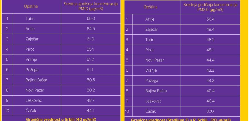 Granična vrednost u Srbiji je 40 mikrograma po kubnom metru, dok je u Evropskoj uniji 20 mikrograma po kubnom metru, a prema preporukama Svetske zdravstvene organizacije 15 mikrograma po kubnom metru.