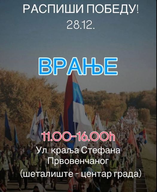 Neformalna grupa „Zbog građana – Vranje“ objavila je poziv svim stanovnicima ovog mesta da „izađu i potpišu pobedu“.